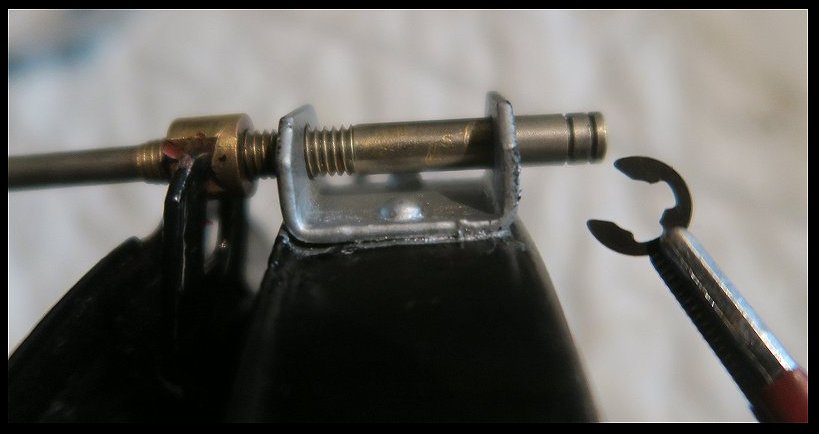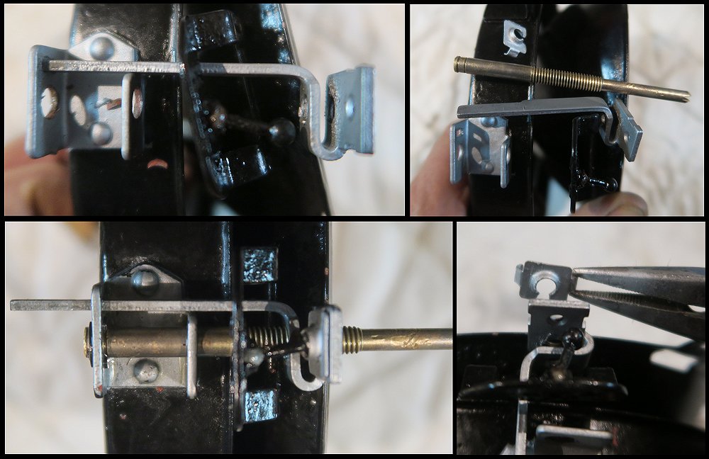 amener la biellette terminée par 2 sphères (un côté reste fixé sur le flasque) dans la fraisure.